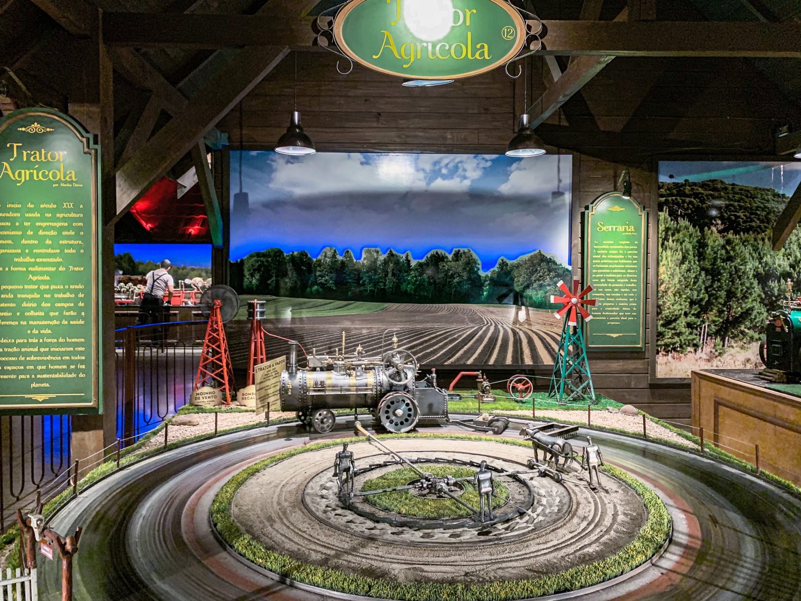 Todas as miniaturas em funcionamento têm o tamanho aproximadamente 20 vezes menor do que o real e em perfeita sincronia. Tem siderúrgica, olaria, serraria, fábrica de papel, usina hidrelétrica, usina eólica, moinho, fábrica de erva mate, entre outros.